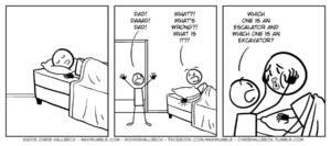 Posts tagged excavator 1 results#1102 – AwakeBy Chris on May 19, 2015 at 12:00 amChapter: ComicTags: escalator, excavator, kids, parenting, sleep