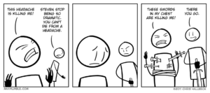 Posts tagged headache 7 results#75 – PiercingBy Chris on March 18, 2011 at 12:00 amChapter: ComicTags: drama, headache, swords Posts navigation Previous 1 2 3