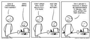 Posts tagged manners 2 results#740 – MannersBy Chris on November 28, 2013 at 12:00 amChapter: ComicTags: manners, snake, wolf#493 – MuffledBy Chris on October 24, 2012 at 12:00 amChapter: ComicTags: manners, mom, restaurant