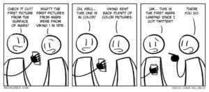 Posts tagged mars 2 results#444 – CuriousBy Chris on August 16, 2012 at 12:00 amChapter: ComicTags: curiosity, mars, msl#175 – FlowBy Chris on August 5, 2011 at 12:00 amChapter: ComicTags: desert, mars, water