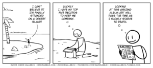 Posts tagged starve 1 results#1146 – DesertedBy Chris on July 27, 2015 at 12:00 amChapter: ComicTags: desert island, record album, starve, vinyl
