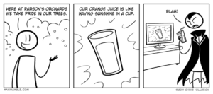 Posts tagged vampires 2 results#253 – ScratchBy Chris on November 23, 2011 at 12:00 amChapter: ComicTags: mashed potatoes, restaurant, vampires#52 – PulpedBy Chris on February 15, 2011 at 12:00 amChapter: ComicTags: orange juice, vampires