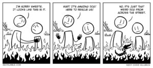Posts tagged rescue 2 results#252 – Hot DogBy Chris on November 22, 2011 at 12:00 amChapter: ComicTags: dog, fire, rescue#136 – SnagBy Chris on June 13, 2011 at 12:00 amChapter: ComicTags: dog, rescue, sausage